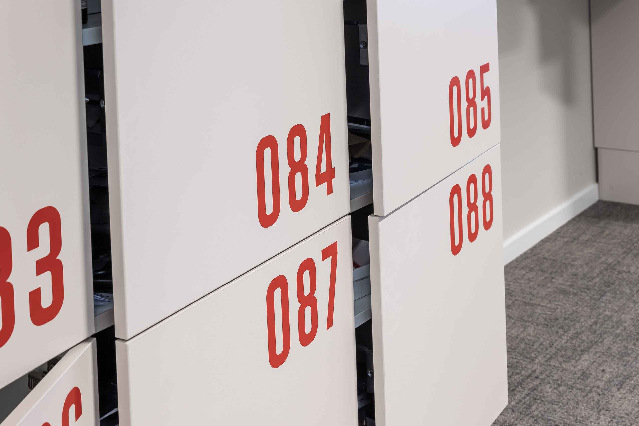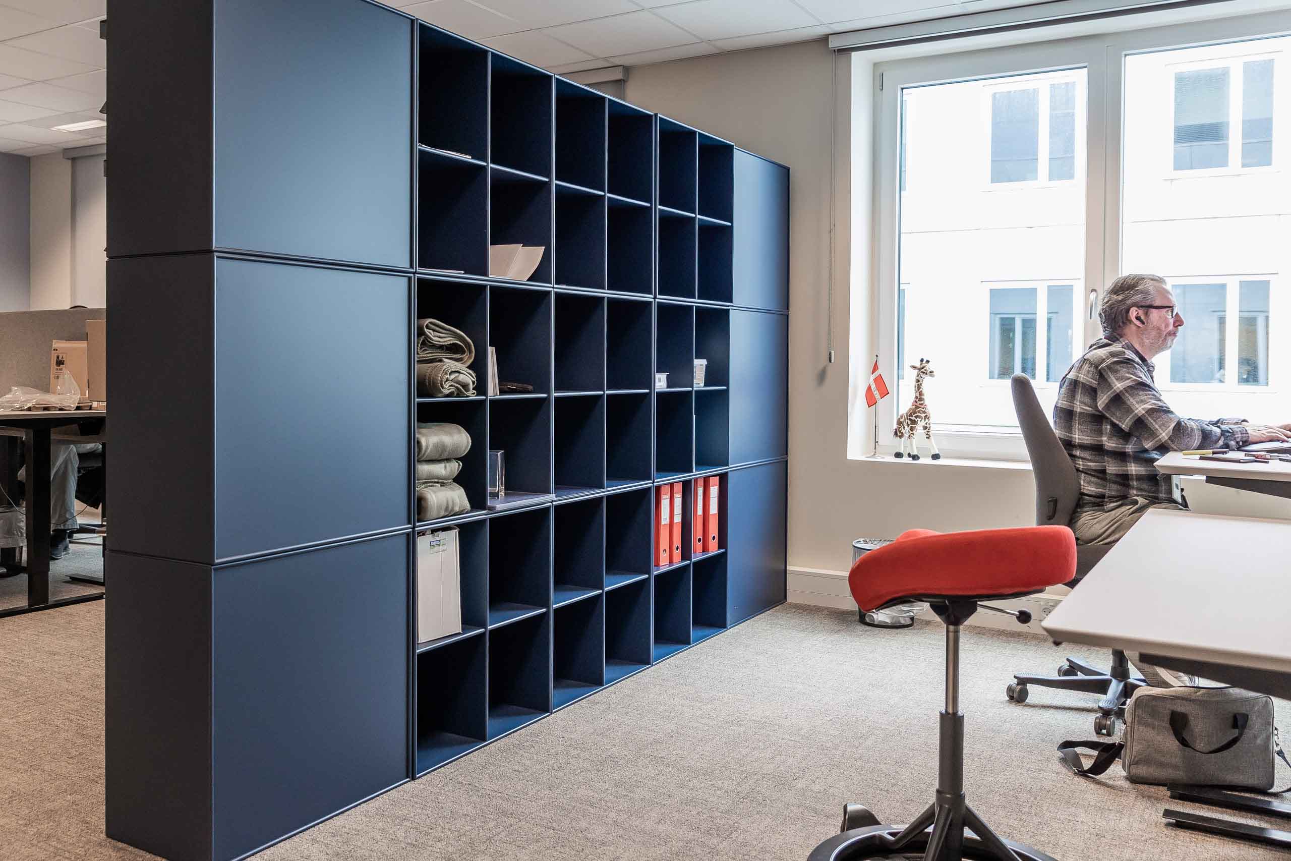 Brugt Montana omlakeret og genbrugt i kontorløsning