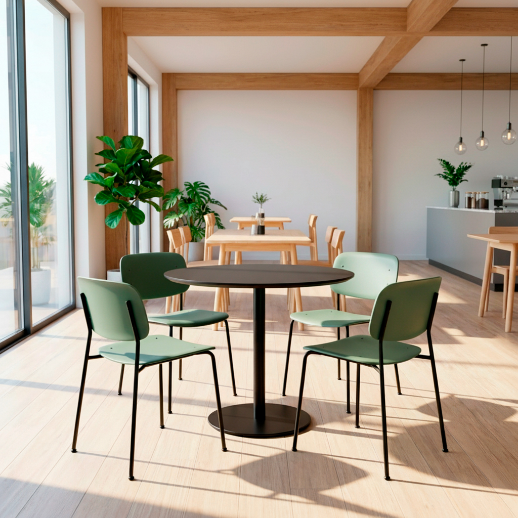 Forny din kantine, frokoststue eller personalerum med det stilrene og funktionelle ZOLID EAT Ø80 kantinebord. Dette runde bord, med en diameter på 80 cm, er designet til at skabe et åbent og indbydende miljø, der fremmer social interaktion og afslappede pauser. Den kompakte størrelse gør det ideelt til mindre rum eller som et supplement til større kantineopsætninger, hvor der er behov for fleksible kantinemøbler.