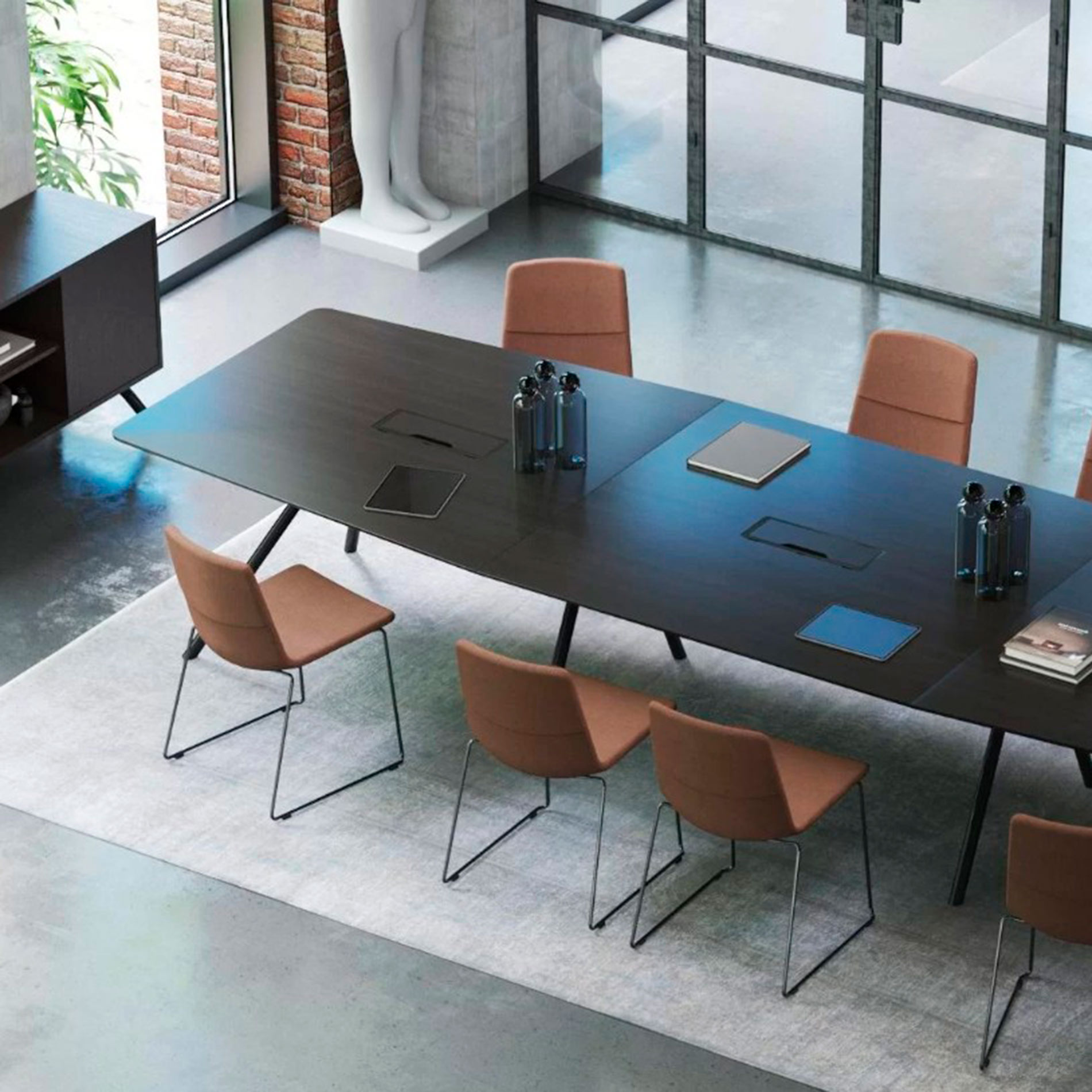 ARQUS mødebordet er en del af den eksklusive ARQUS møbelkollektion, udviklet i samarbejde med det anerkendte italienske studie Orlandini Design. Kollektionen er skabt med det formål at nytænke konference møbler ved at introducere lette, flydende linjer og et moderne luksusudtryk, der bevarer den præsentable image, men med en fornyet æstetik.
