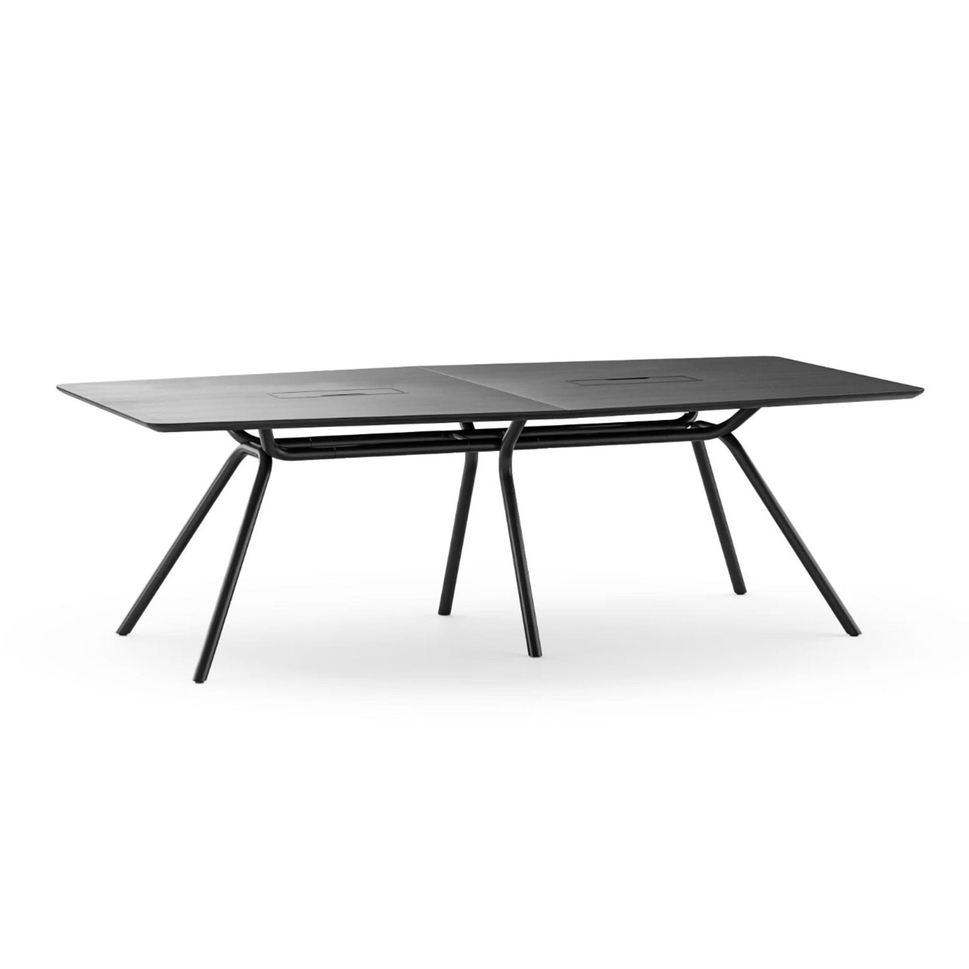 Ramme/stel: Mødebordet er bygget på en robust konstruktion med metalbordben, der er et karakteristisk designelement. Disse ben tilfører møblet en følelse af lethed, samtidig med at de sikrer enestående lang levetid og holdbarhed.
