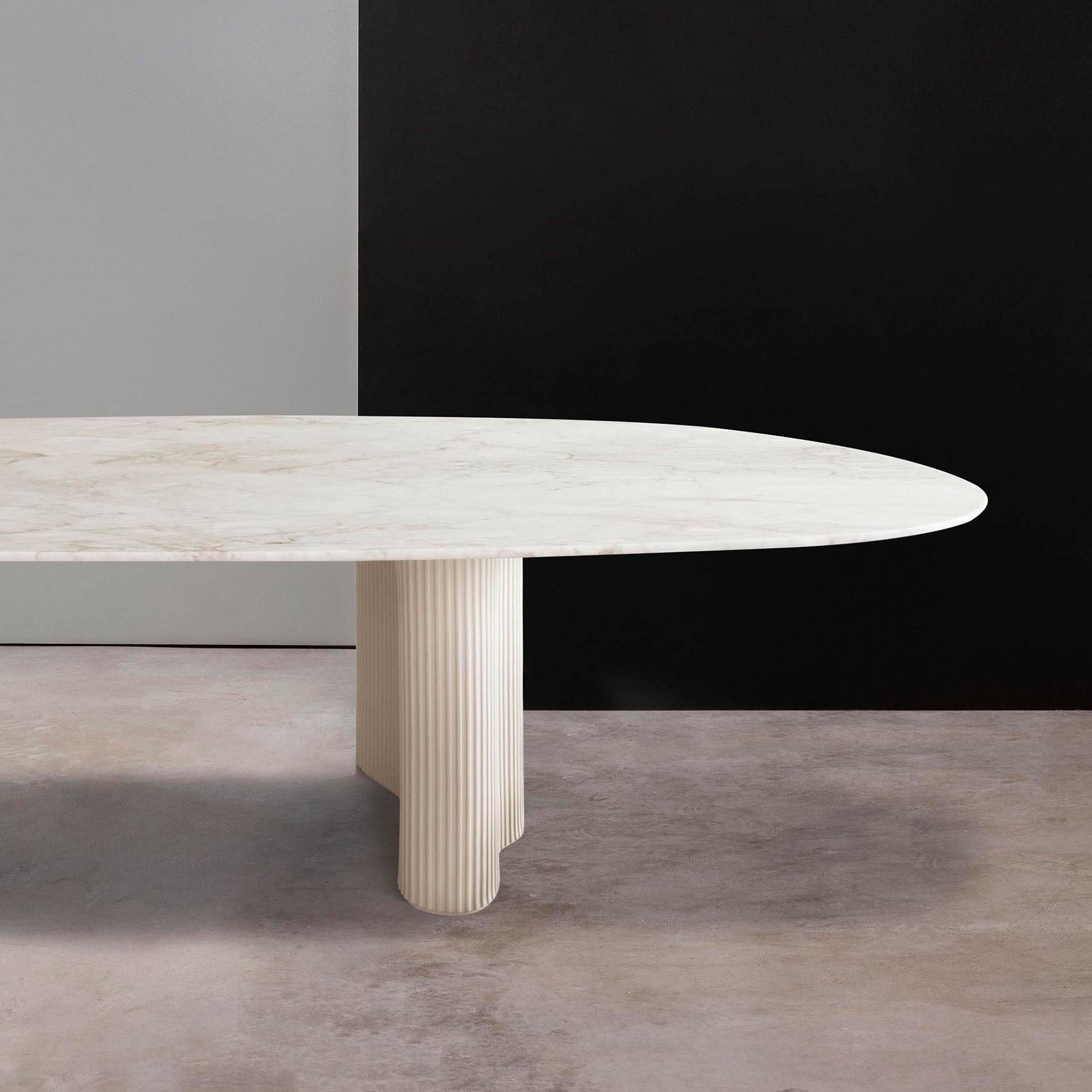 Bordets base er fremstillet i Pure Eco® thermo-polymer, som er et 100 % genanvendt og genanvendeligt materiale. Den karakteristiske base fås i flere farver og giver bordet et robust og moderne udtryk, samtidig med at den sikrer stabilitet.