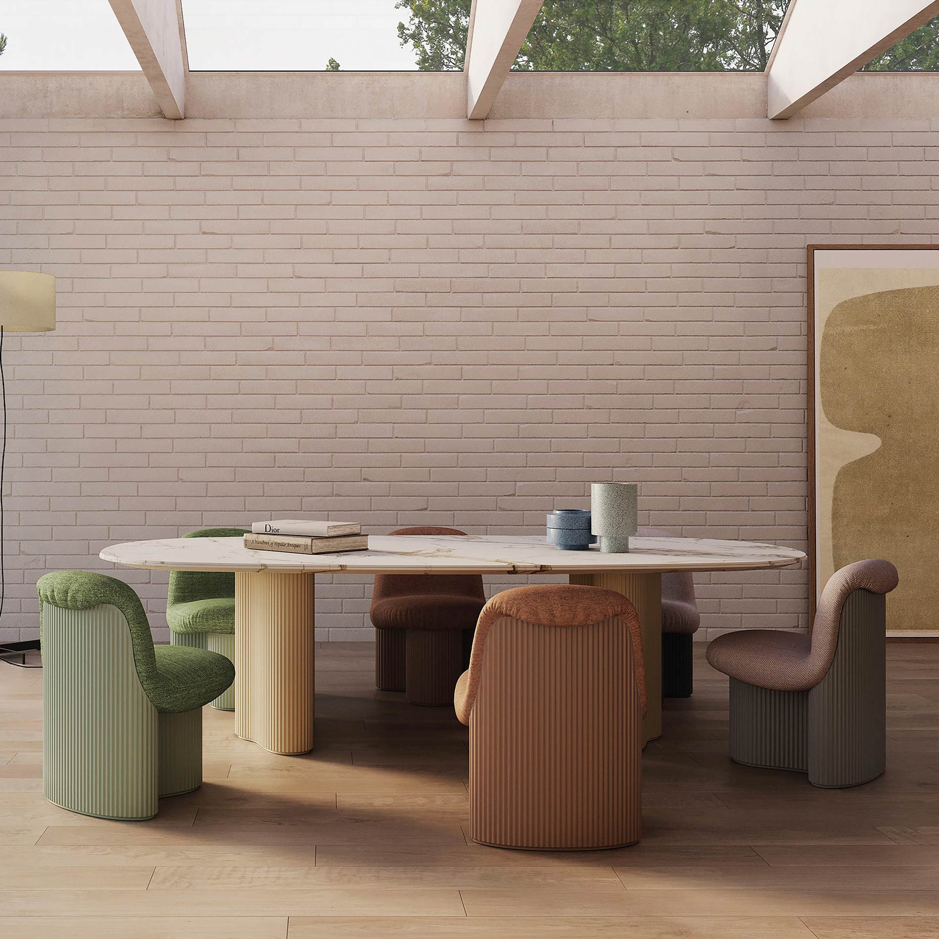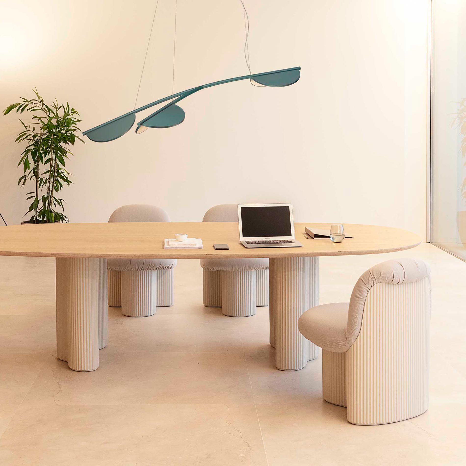 BOLETE er et møde- og konferencebord, der kombinerer et markant design med høj funktionalitet og fokus på bæredygtighed. Bordet er udviklet til moderne arbejdspladser, hvor fleksibilitet, materialevalg og tekniske løsninger spiller en vigtig rolle i indretningen af møderum og samarbejdsområder.