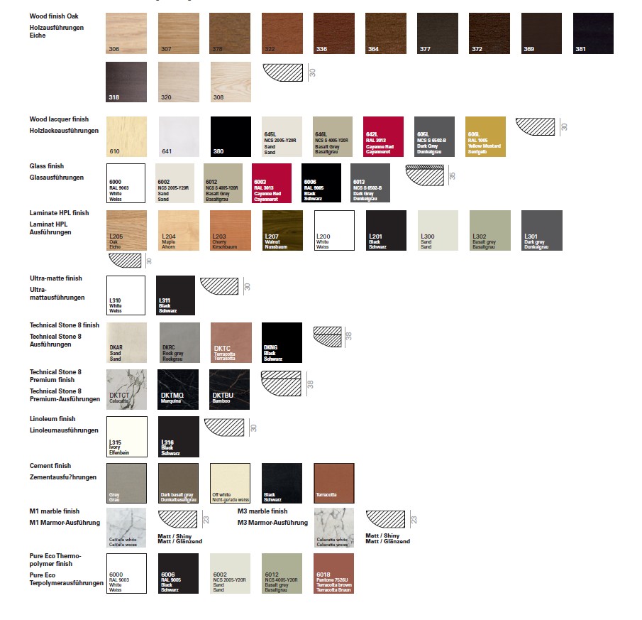 Bolete mødebordet kan tilpasses forskellige behov takket være et bredt udvalg af bordplader i forskellige former og størrelser. Bordpladerne fås blandt andet i: