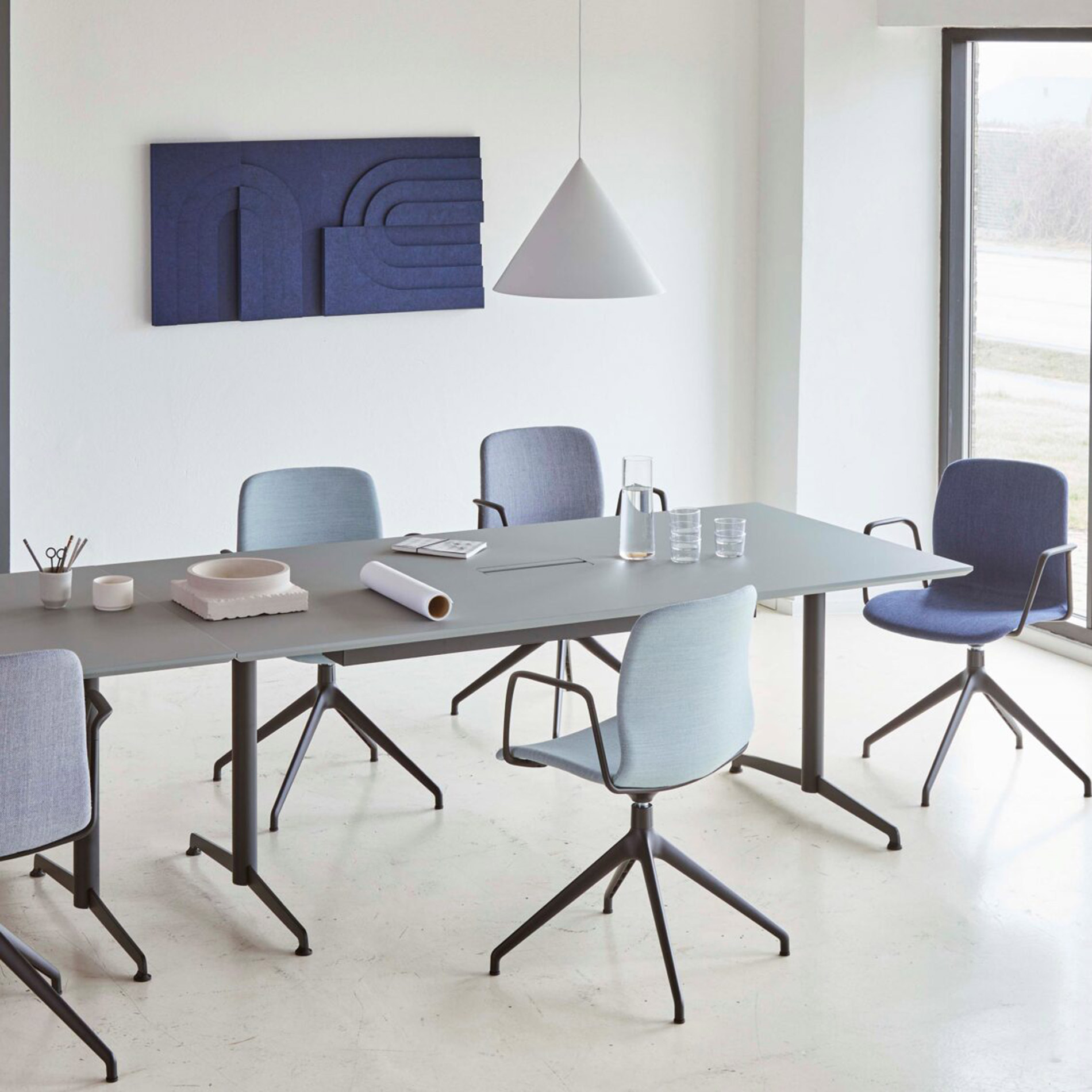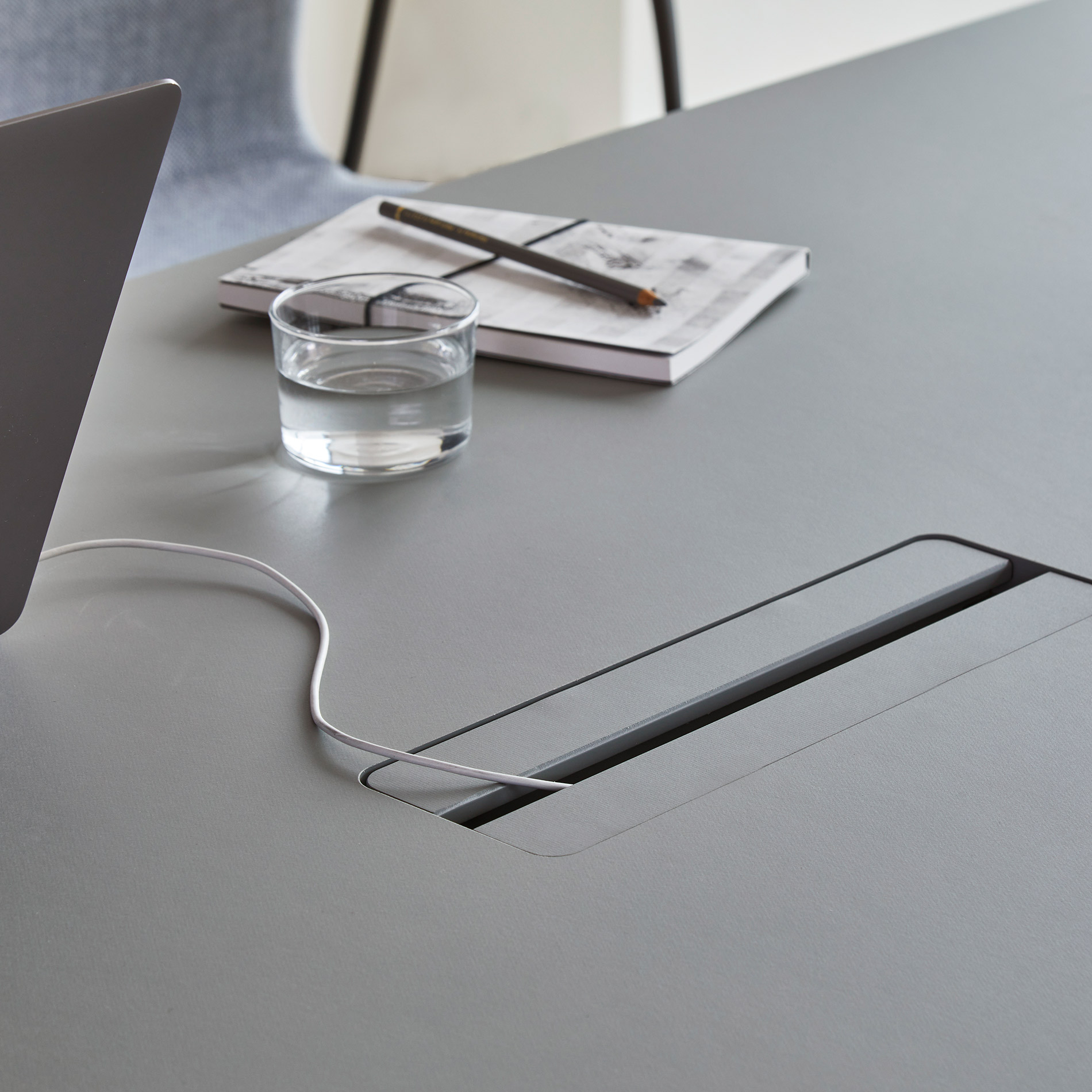 Gate mødebordet er skabt til at passe ind overalt. Med et bredt udvalg af størrelser og muligheden for at vælge mellem lige eller afrundede hjørner, kan du skræddersy bordet til netop jeres behov. Gør bordet endnu mere funktionelt med praktisk tilbehør som kabelbakker og diskrete kabelluger, der holder styr på ledninger og skaber et ryddeligt arbejdsmiljø.
