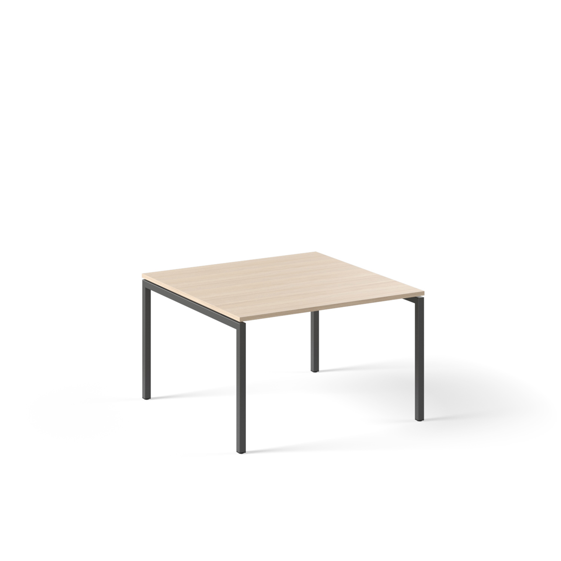 Vælg mellem bordplader i MFC (melamin, 25 mm) eller finér (25 mm), og tilpas designet med et stort udvalg af bordpladefarver og seks standardfarver til metalrammen. Den robuste metal konstruktion og pulverlakerede stålben (40x40 mm) sikrer stabilitet og lang levetid. Se materiale og farvevalg her.