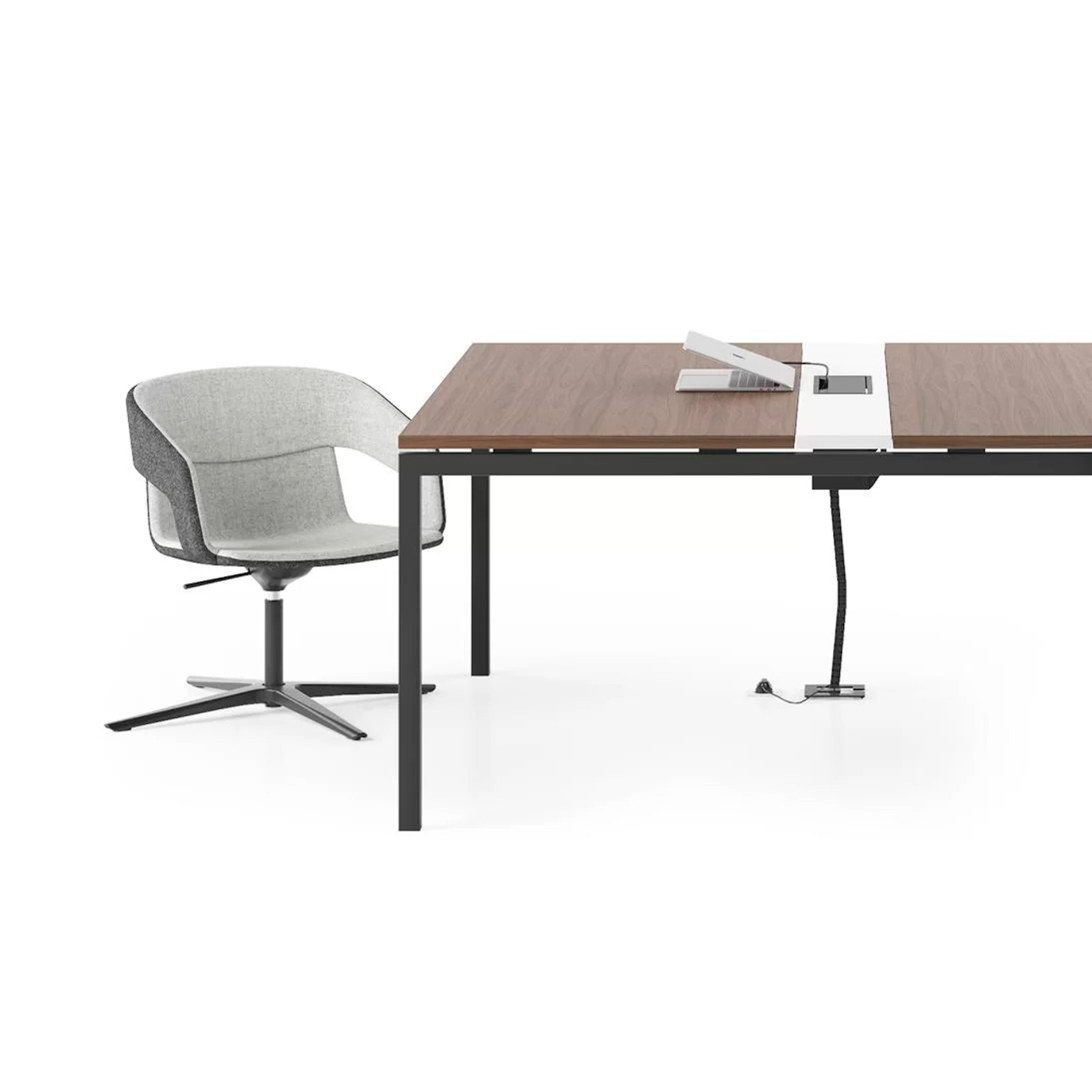 NOVA er designet med intelligente løsninger, der skaber æstetisk tiltalende og velorganiserede mødeområder. Bordet er udstyret med funktionelle designindsatser, der kan vælges i en kontrastfarve til bordpladen for et legende udtryk. Disse indsatser skjuler effektivt internet- og strømbokse, mens integrerede horisontale og vertikale kabelkanaler sikrer, at alle ledninger er pænt gemt væk. Resultatet er et rent og ryddeligt mødemiljø, der fremmer fokus og produktivitet.