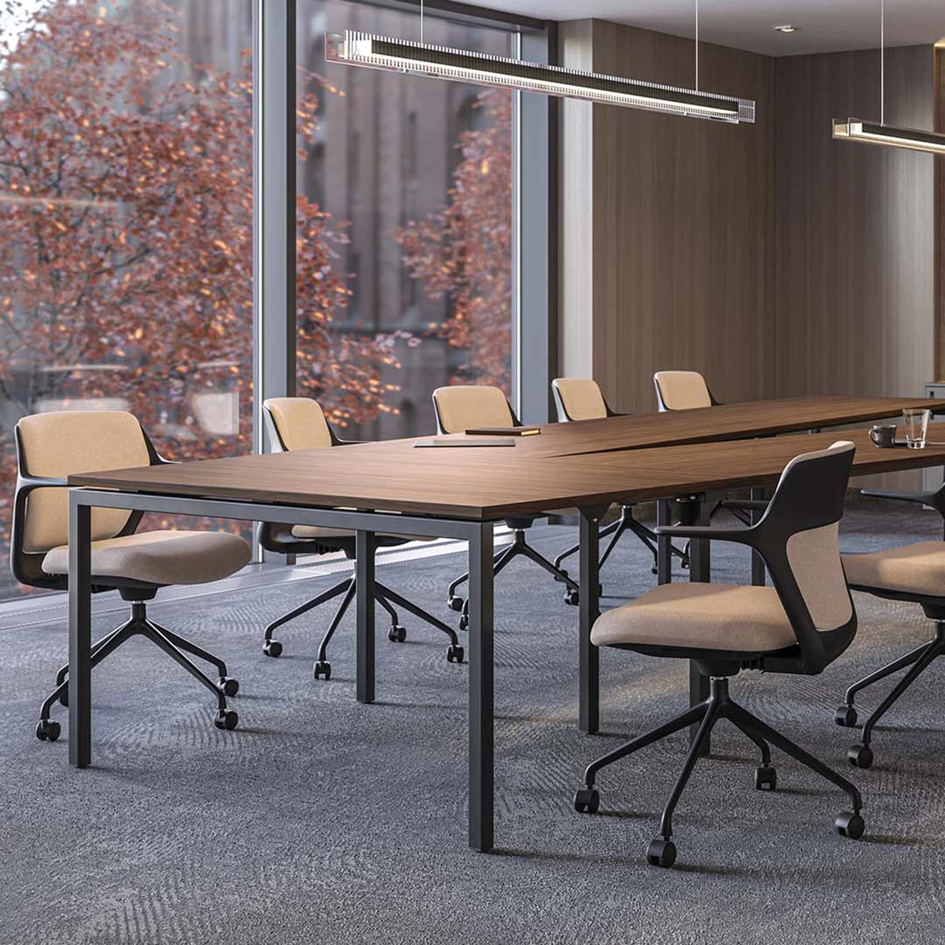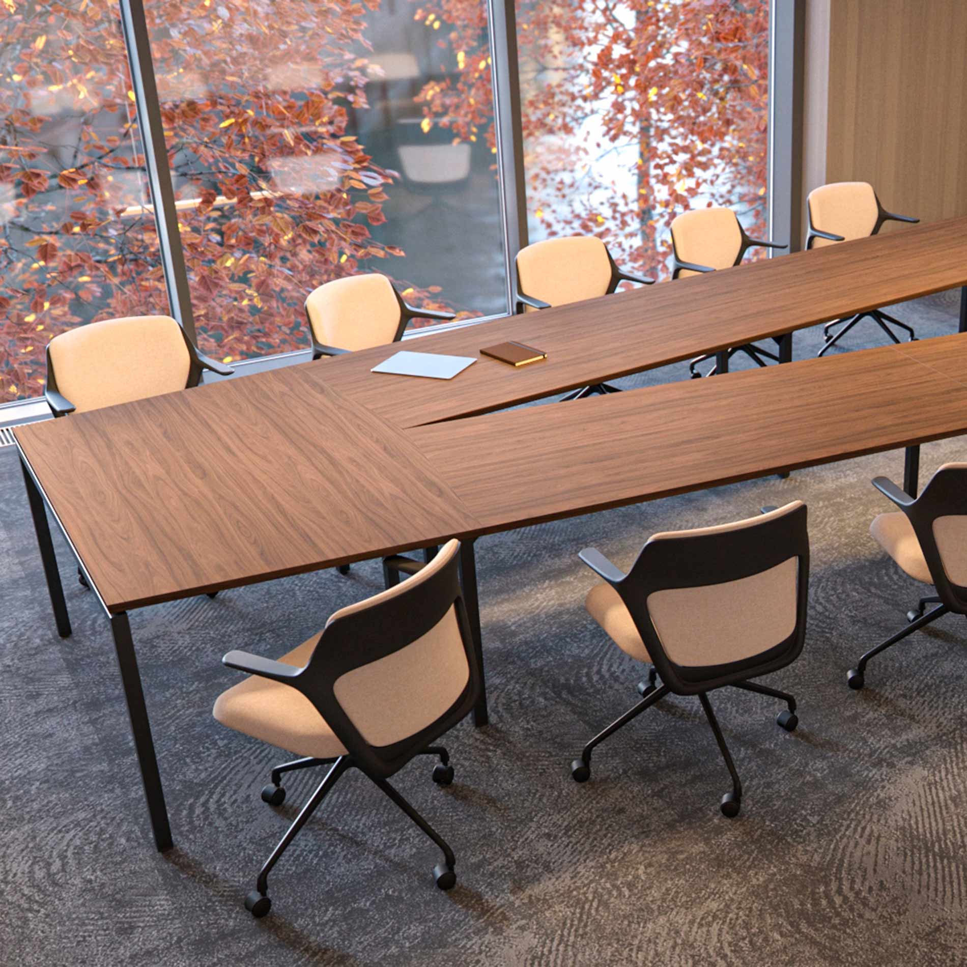NOVA mødebordet er et fleksibelt mødebord og kan rumme 6 til 12 personer med mulighed for udvidelse. Det har smarte designindsatser, der skjuler internet- og strømbokse, samt integrerede horisontale og vertikale kabelkanaler.