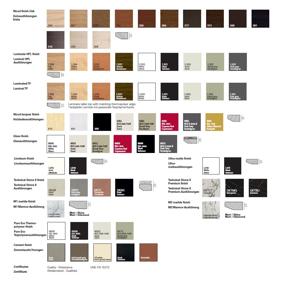 Reverse er designet som et fleksibelt bordprogram. Det betyder, at bordet kan kombineres med et stort udvalg af bordplader i forskellige: