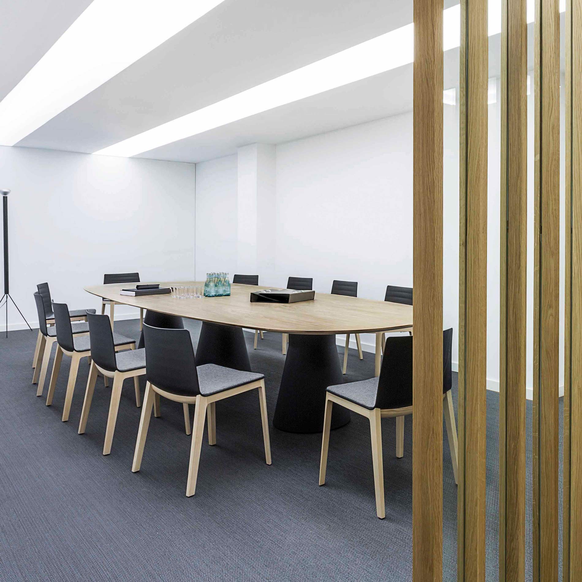 Hvilket gør det muligt at skabe alt fra mindre mødeborde til større konferenceborde til mange deltagere.