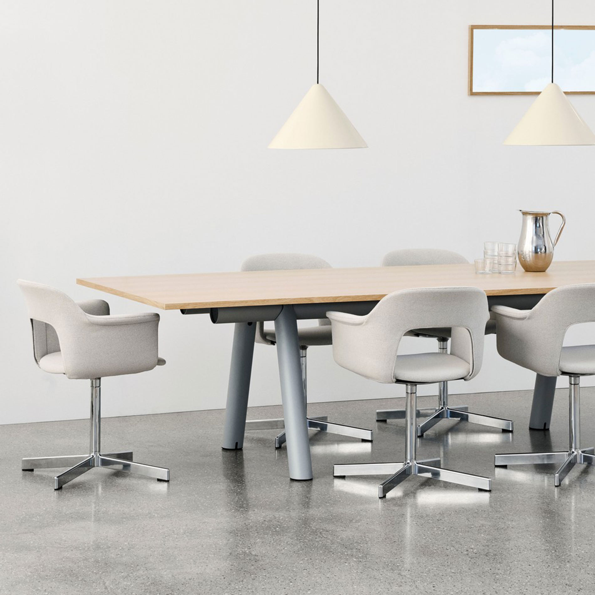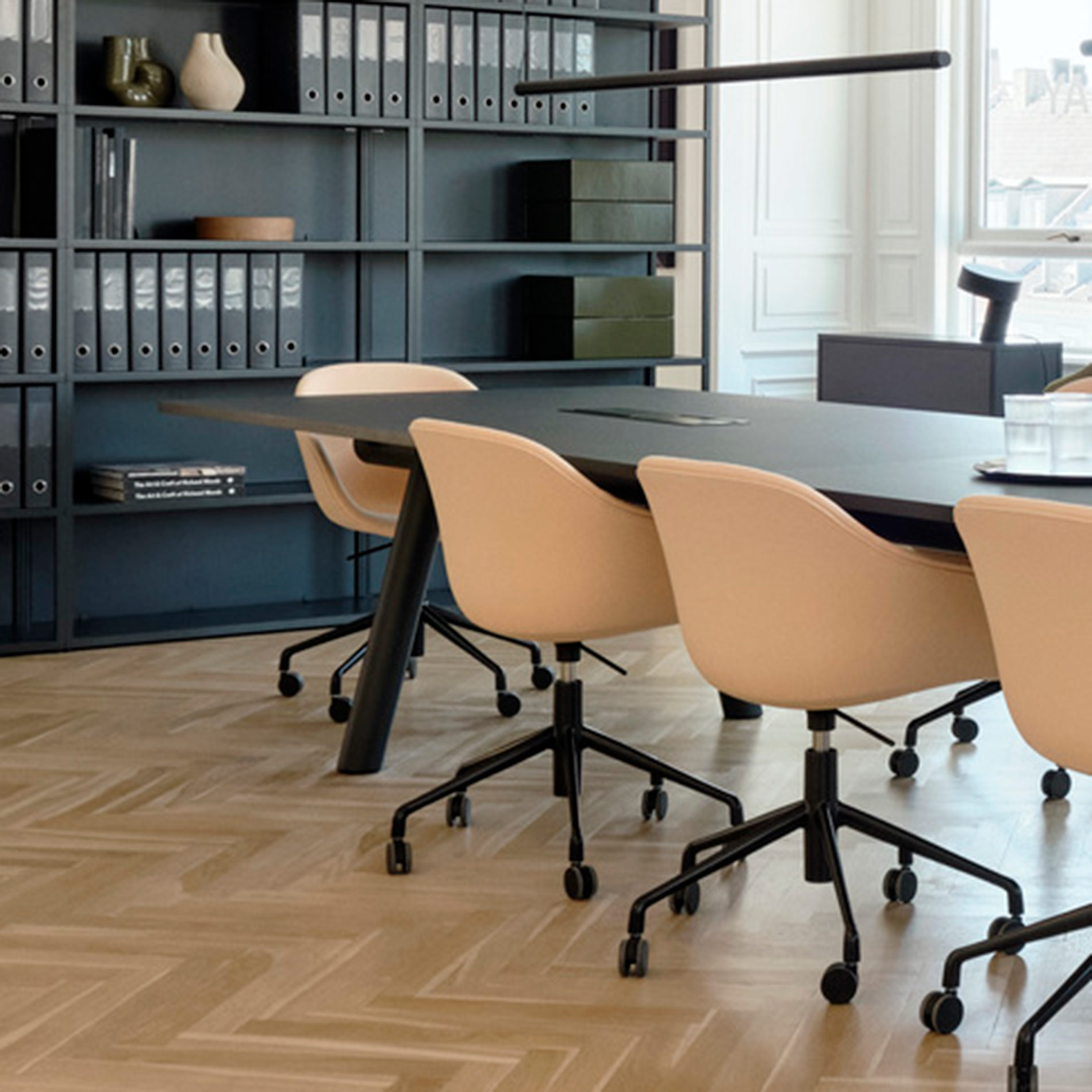 BOA konferencebordet kan tilpasses til mange forskellige behov. Bordpladerne fås i flere materialer og farver:
