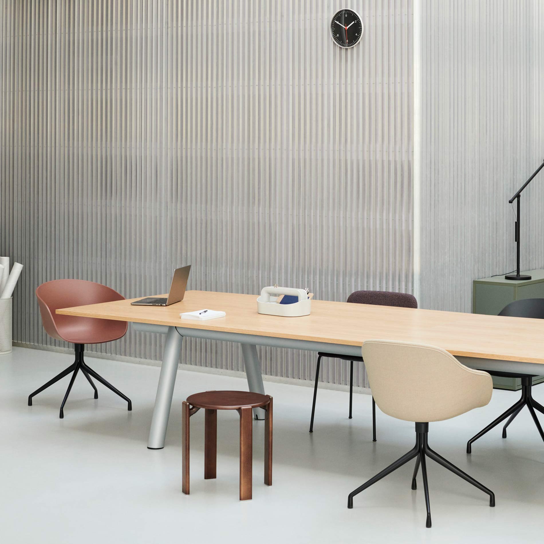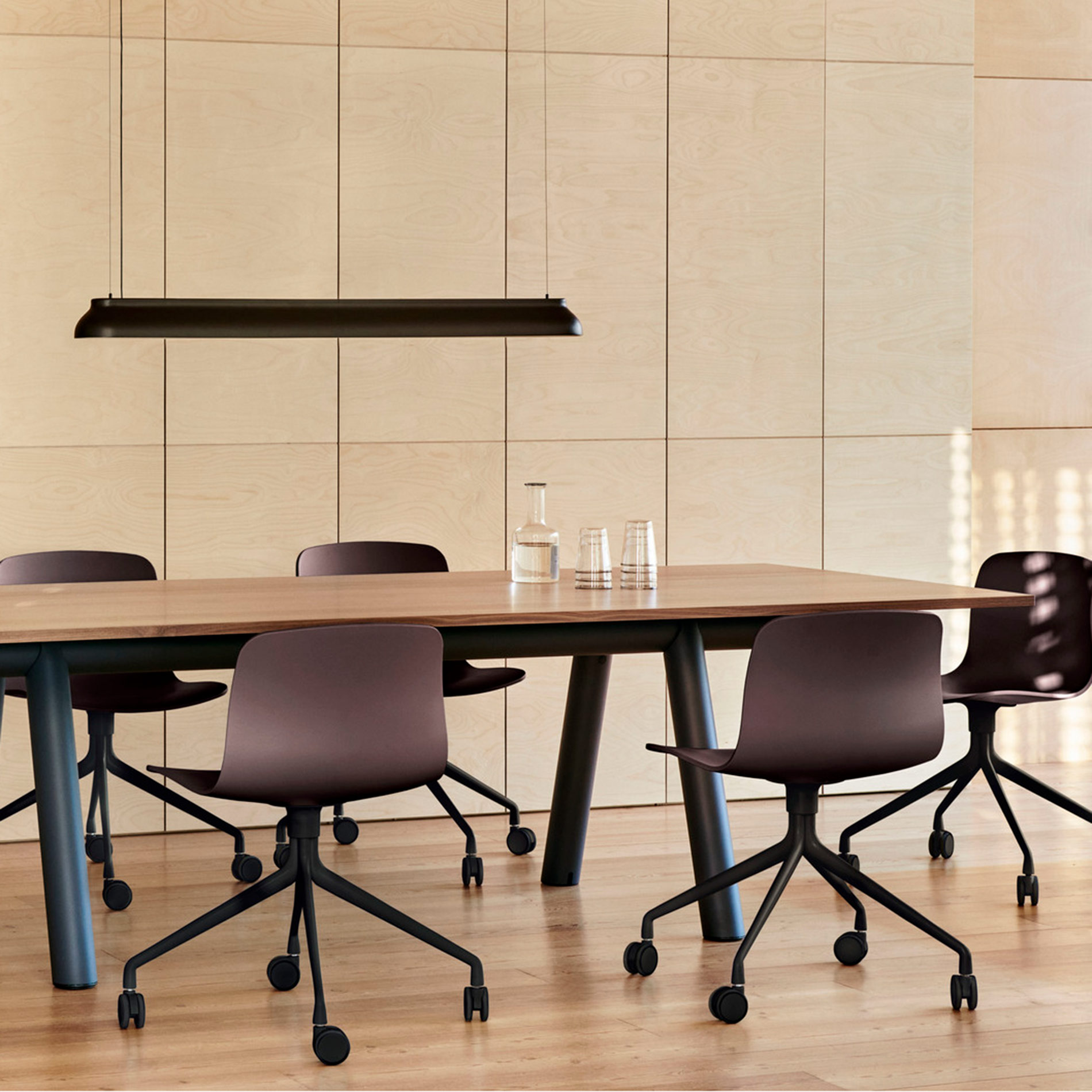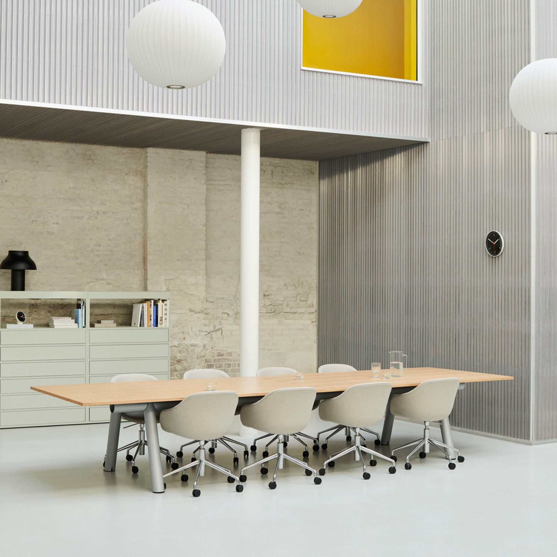BOA mødebordet fra HAY, designet af Stefan Diez, er en moderne fortolkning af konferencebordet, inspireret af traditionel japansk bambushåndværk. Bordet er fremstillet med en rørformet ramme udelukkende af Hydro CIRCAL aluminium, som består af minimum 75% genanvendt skrot. Bordplader kan tilpasses i materialer som linoleum, laminat, træ eller glas, og rammerne fås i flere farver og størrelser. BOA Mødebordet kan desuden suppleres med strømforsyning og kabelopbevaring, hvilket gør det ideelt til møde- og konferencelokalet.