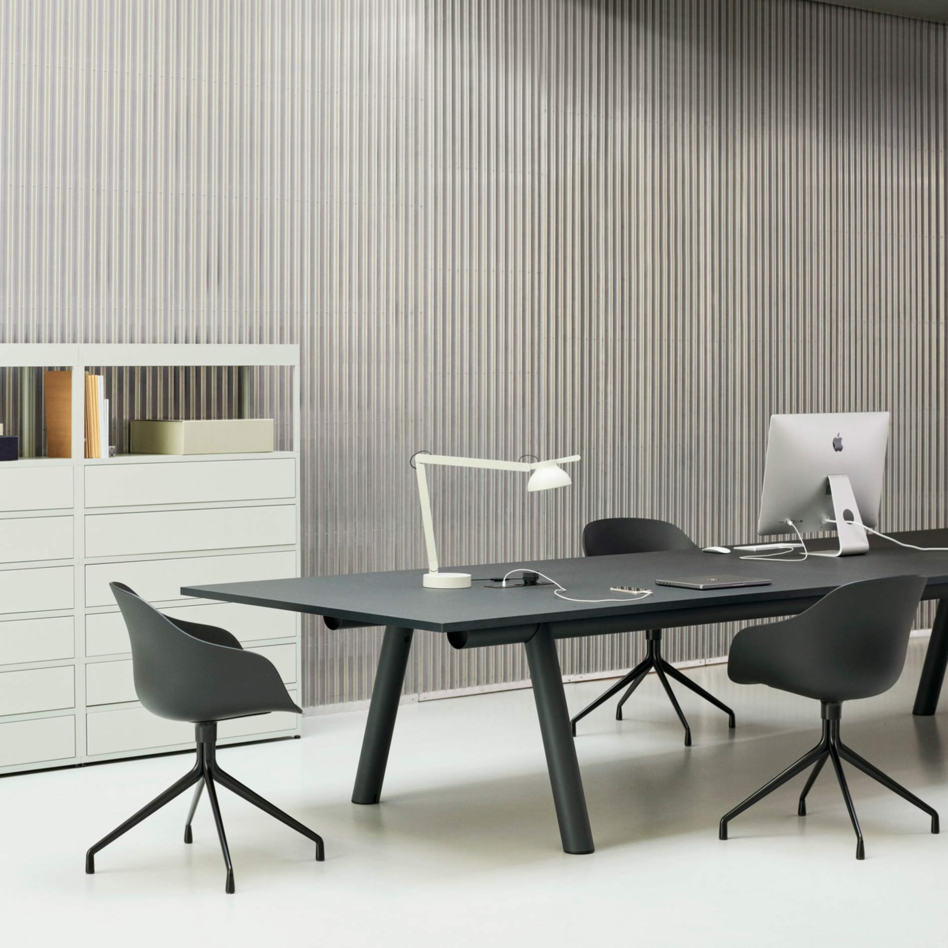 BOA mødebordet fra HAY, designet af Stefan Diez, er et moderne konferencebord, der skiller sig ud med sit innovative design og fokus på bæredygtighed. Bordet er inspireret af traditionelt japansk bambushåndværk, hvilket giver det et helt unikt udtryk.