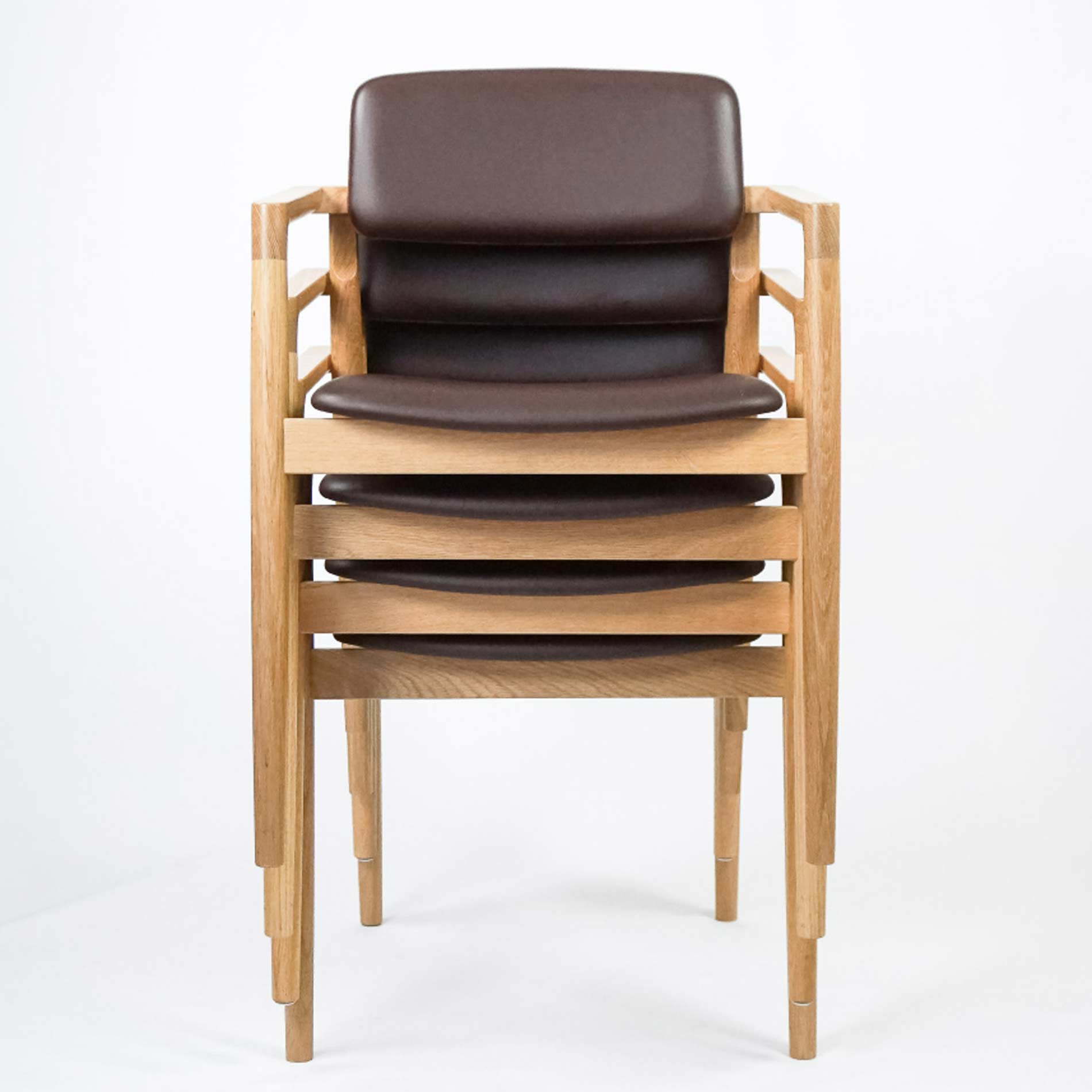 Stolen fås med stel i massivt eg eller bøg og leveres i forskellige overfladebehandlinger såsom natur lak, lysnet lak, brun- eller sortbejdset. Materialerne er nøje udvalgt for at sikre lang levetid og minimal vedligeholdelse i miljøer med høj belastning.