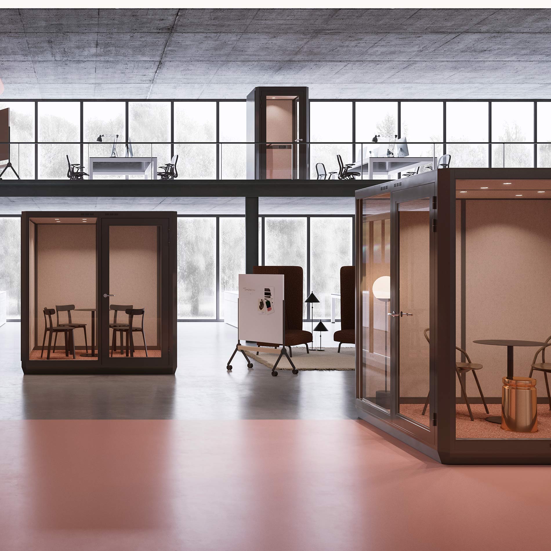 Med en lydreduktion på op til 36 dB sikrer Plenty Pod Large optimale forhold for møder og samarbejde, samtidig med at støjniveauet i kontoret reduceres.