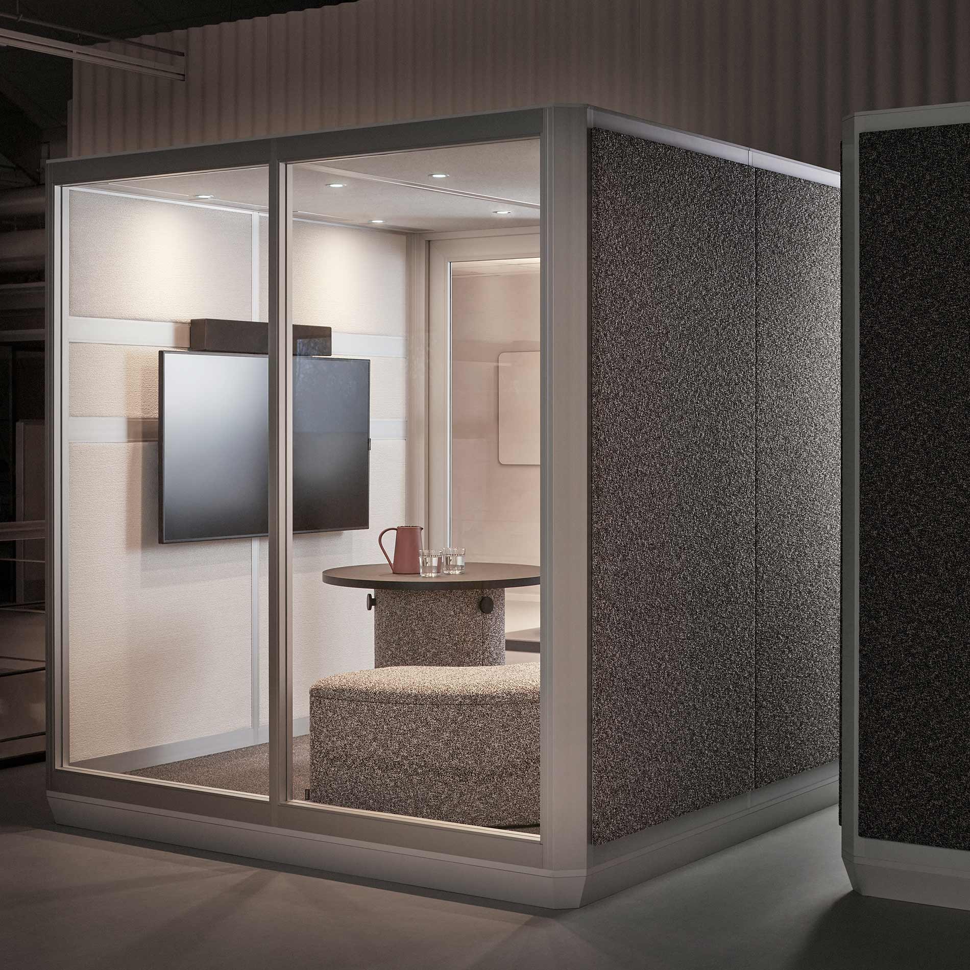 Plenty Pod Large er udviklet til virksomheder, der har behov for fleksible mødefaciliteter uden permanente løsninger. Boksen er designet til flere personer og fungerer perfekt som mødelokale, projektzone eller arbejdsrum.