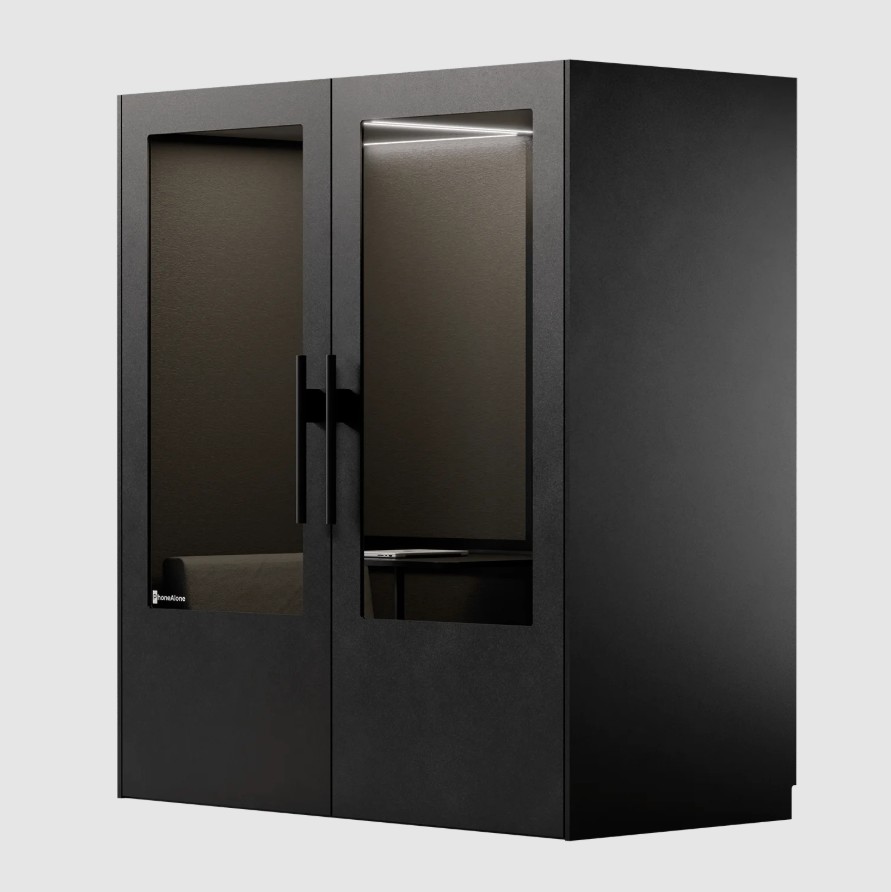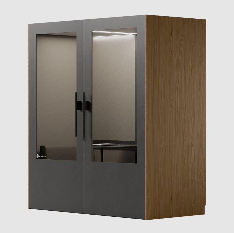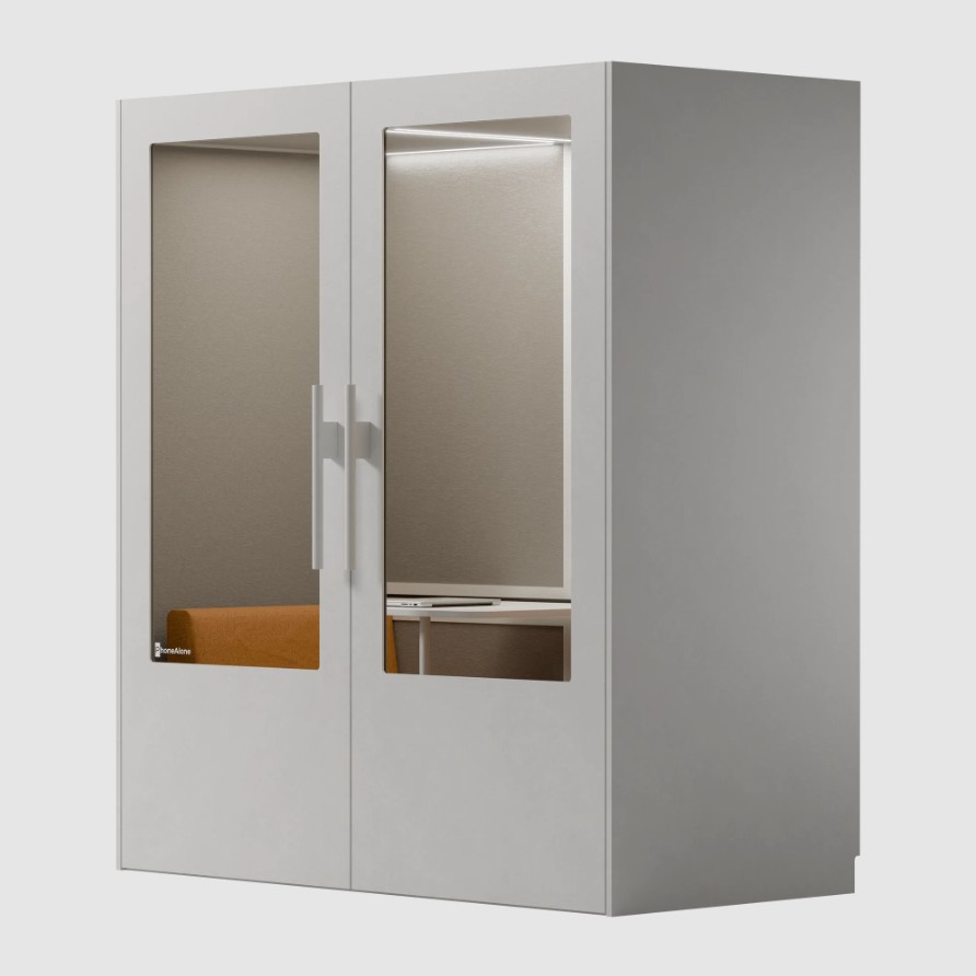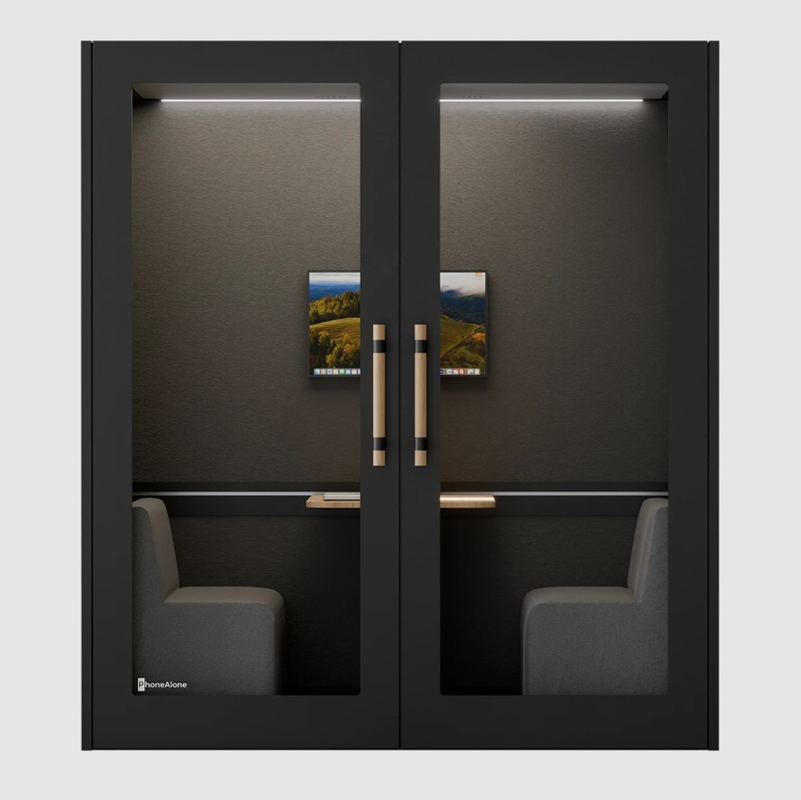 PhoneAlone Dobbeltboks er den ideelle løsning til virksomheder, der ønsker at skabe stille zoner til møder, samarbejde og fordybelse i åbne kontormiljøer. Boksen er designet til op til to personer og giver et afskærmet rum, hvor man kan arbejde koncentreret eller afholde uforstyrrede samtaler.