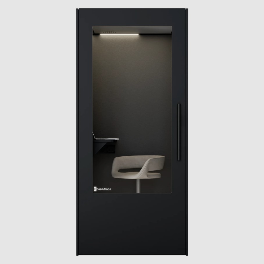 PhoneAlone telefonboks er en moderne og effektiv akustik telefonboks, udviklet til virksomheder, der ønsker at skabe ro og fokus i åbne storrumskontorer og arbejdsmiljøer.