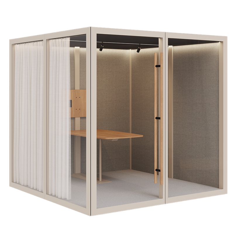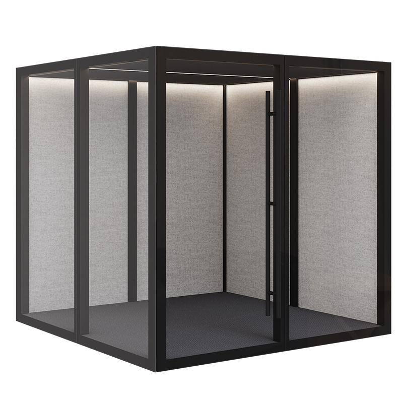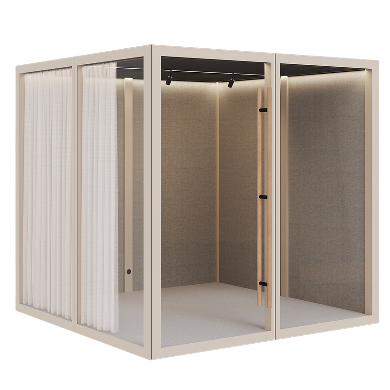Zen Pod Large fra Abstracta er en rummelig og professionel akustik mødeboks, der er designet til 2–4 personer og fungerer som et effektivt alternativ til traditionelle mødelokaler. Med sine dimensioner på H:2310 × B:2320 × D:2320 mm. tilbyder denne model god plads til samarbejde, møder og præsentationer, samtidig med at den sikrer et afskærmet og støjdæmpet akustik miljø.