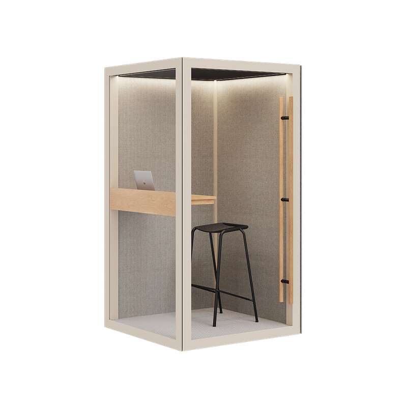 Zen Pod Small fra Abstracta er en kompakt og effektiv akustik telefonboks, udviklet til moderne kontormiljøer, hvor behovet for ro, koncentration og fortrolighed er afgørende. Den lydtætte akustikboks er designet til én person og fungerer optimalt som mutebox til telefonsamtaler, videomøder og fokuseret arbejde i åbne storrumskontorer.